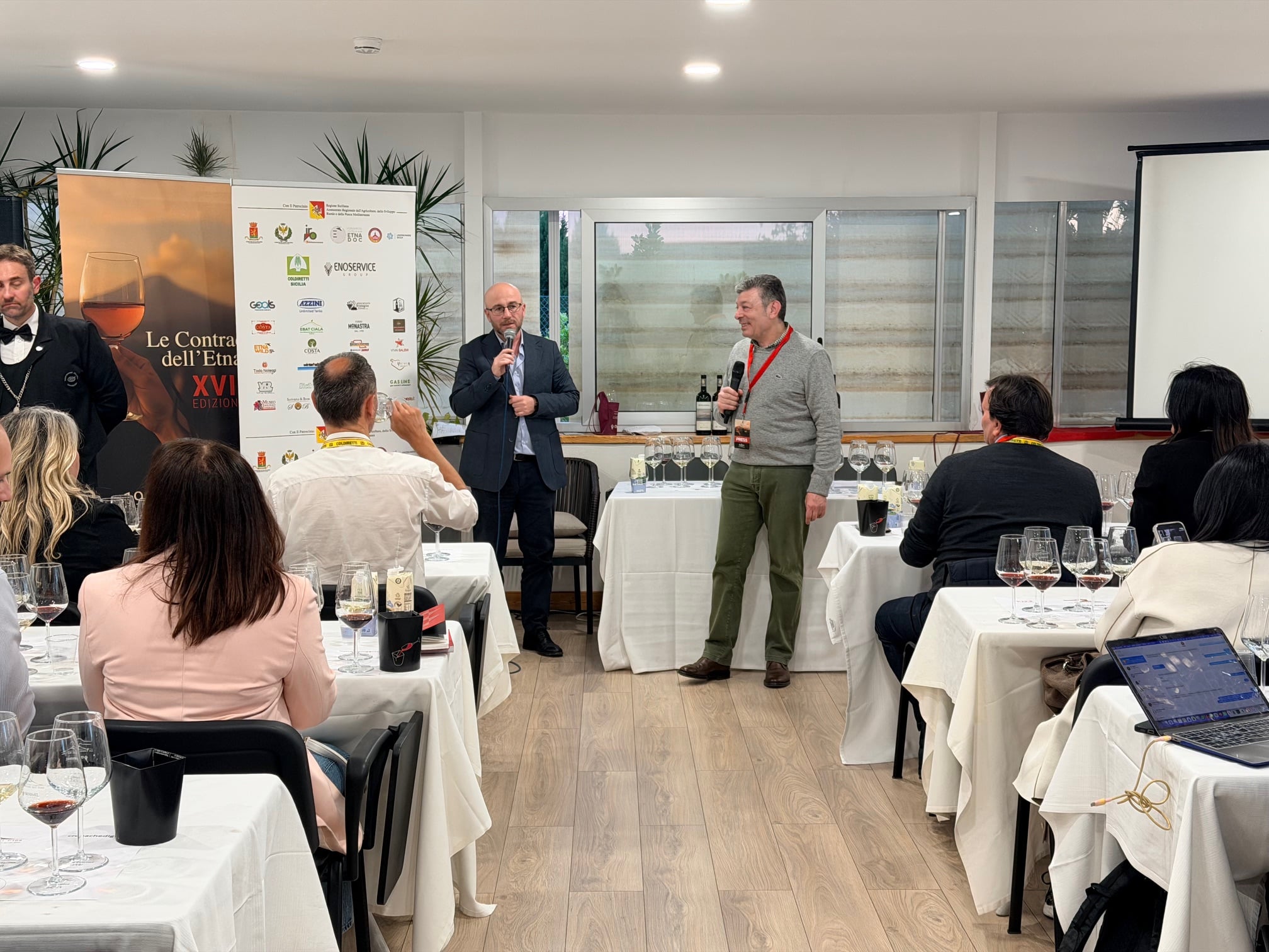 Da sinistra Agatino Failla e Federico Latteri durante la masterclass dedicata ai vini di Benanti