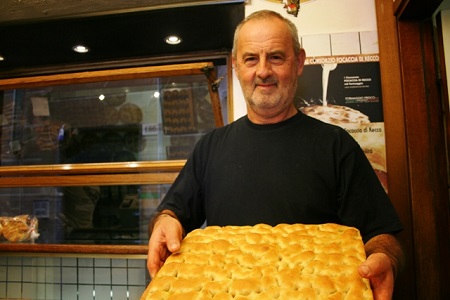 (Il signor Revello a Camogli, punto di riferimento per la focaccia ligure)