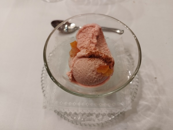 La partenza non poteva che essere un piatto dedicato al Suino Nero dei Nebrodi allevato allo stato brado, come cavallo di battaglia dell’attività Borrello, con un crudo di 28 mesi e ghiande, accompagnato da un gelato di formaggio dell’Etna detto Grana Etna, un dolce presente nella carta di Casa&Putia