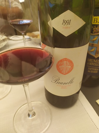 Il vino non è solo una delle peculiarità di questa storica realtà familiare, che attraverso la lungimiranza di chi ne tiene le redini, riesce a mantenere vivo il senso di ospitalità e della cultura in generale di questi emozionanti luoghi. Emozione che è facile ritrovare sorseggiando un calice di Brunello di Montalcino Vigna del Fiore 1991, cru della Fattoria dei Barbi, ottenuto da un unico appezzamento di 5,7 ettari chiamato “Il Fiore” che ospita la vigna più a sud dell’azienda, coltivata a vite sin dal 1500. Affascinante già alla vista, esprime la sua grazia ed eleganza, le sue note olfattive floreali e agrumate di cedro e bergamotto. Soffi balsamici di eucalipto ne rinfrescano il sorso, abbracciando il palato con piacevolezza e avvolgenza.