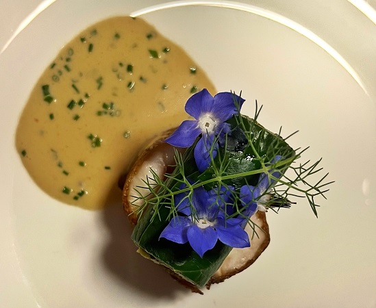(Damiano Nigro – Spalla di coniglio brasata, carciofi sott’olio, maionese di mandorle e salmone affumicato)