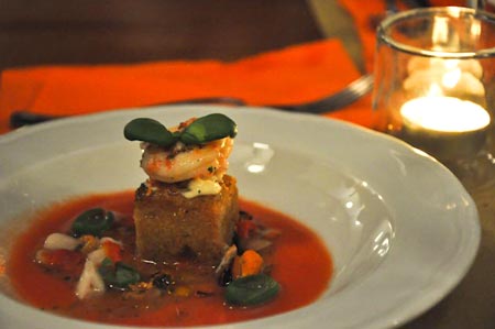 Paolo Barrale, “l’emozione”, che unisce cuore e corpo, con il suo “Riso cotto con l’acqua di cipolla, caprino e gamberi rossi”;