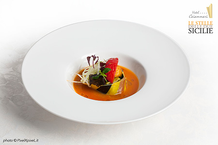 Invece l’invito pervenuto dall’ Hotel Caiammari, un quattro stelle ricavato da un’ex villa ottocentesca, immersa nel verde di un parco (con centoquattro piante rare e secolari di specie diverse, sedici camere, due suite e lambita dal mare dell’Isola di Fanusa, una contrada sotto il Plemmirio di Siracusa), interpretava non in modo esplicito, ma lasciandolo intendere, una serata a tavola con le “Stelle delle Due Sicilie”. Con l’effetto di un’immediata e nitida percezione, quella di una cucina regale fatta di visioni opulente, di sofisticata e ricca di storia nobilissima, e borbonica. Ma, allo stesso tempo, plebea come il popolo napoletano. Con episodi farciti di umori isterici, di principesse austriache e tavole gattopardiane, con pasticci di fegato e torreggianti timballi, trionfi di frutta e maccheroni in crosta e così via. Insomma l’aria del “Regno delle due Sicilie” si è respirata, nel preludio della serata, e a pieni polmoni. Ma così, e per fortuna, non è stato. Con sei priìcipi dei fornelli, tre napoletani e tre siciliani, tutti stellati, il menù che ne è saltato fuori è stata l’autentica espressione di una cucina del terzo millennio. Distante non un secolo e mezzo, da quel che evocava il titolo della serata, ma anni luce. Senza rinnegare però, le proprie radici.