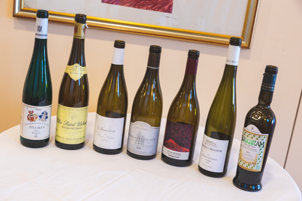 In merito alla selezione dei vini, da quando Mattia è arrivato, la cantina è cresciuta in modo esponenziale e anche l’Italia oggi conta 800 etichette sulle 4500 totali presenti, con una prevalenza per i vini bianchi. Quello che Mattia ha voluto raccontare attraverso le etichette scelte per questo incontro è una sorta di viaggio attraverso il percorso degustativo del Geranium. Si parte con il Riesling della Mosella, il Saarburger Rausch Riesling 2021 di Zilliken, decisamente giovane in questo millesimo, ma che ben si presta al gioco di abbinamento con piatti semplici e freschi, dove vegetali come il cetriolo sono protagonisti. Un vino fresco con il frutto agrumato e un delicato floreale di sottofondo. Si passa poi in Francia con il Domaine Vacheron Sancerre Blanc, 2021 Sancerre, siamo nella Valle della Loira, un Sauvignon blanc in purezza realizzato con una selezione di uve provenienti da diverse parcelle della tenuta, che esprime note vegetali di bosso e di erbe officinali, profumi di agrumi, di scorza di pompelmo e una leggera speziatura di pepe; un vino teso dotato da un’aromaticità delicata e sottile, sostenuta da una grande freschezza. Si resta in Francia, ma nel cambio portata – come racconta Mattia – è richiesto un vino di maggiore corpo e pienezza, ed è il caso del Domaine Larue, Les Buées 2019 Bourgogne Cote-d’Or, ottenuto da uve Chardonnay del comune di Chassagne-Montrachet che esce sotto l’AOC Bourgogne-Côte d’Or. Le uve per il Bourgogne-Côte d’Or Les Buées arrivano da un piccolo vigneto esposto a sud e situato ad una altitudine di 200 metri slm, che insiste su un terreno argilloso-calcareo. Un vino che propone un corredo fruttato di buona finezza affiancato da sentori floreali e da un’avvolgente nota calda e avvolgente di burro fuso, una leggera affumicatura e frutta tostata; pieno e complesso al sorso.