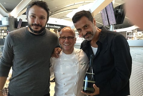 (Antonio Capaldo, Heinz Beck e Fabio Novembre con uno spumante Dubl)