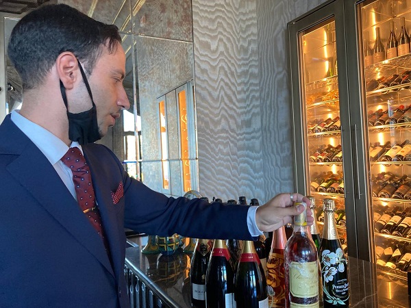 Continuando il percorso attraverso la struttura prosegue il racconto nel food and beverage dell’hotel. La scelta si snoda dall’all day dining “Rosso”, in un mix fra prodotti siciliani e i classici “signature” di un albergo di lusso come cesar salad e club sandwich, a una proposta più leggera offerta dal ristorante adiacente la piscina “Anchiovi” dove il richiamo anglo siculo del nome si concretizza in un’offerta prevalentemente a base di pesce, e rivisitazioni che spaziano dal crudo alla cucina fusion in chiave siciliana. In questo contesto si inserisce l’offerta enoica pensata dall’head sommelier basata su una sintesi della “Master Wine list”, dalle grandi denominazioni francesi come Chablis e Champagne a proposte legate all’identità locale: “Il pubblico internazionale cerca sempre il territorio, poi comunque c’è chi già ha intenzione di orientarsi verso Grand Cru e Premier Cru francesi. Quando arrivano al ristorante ospiti di alto livello che nei loro yatch posseggono già una selezione importante anche qui non rinunciano alla ricerca di grandi blasoni. Altri ospiti ancora vogliono provare etichette meno conosciute, e la cosa bella è quando ti chiedono di provare qualcosa di nuovo magari della stessa denominazione” spiega.