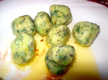 Gnocchi di spinaci con ricotta locale, burro, salvia e semi di papavero