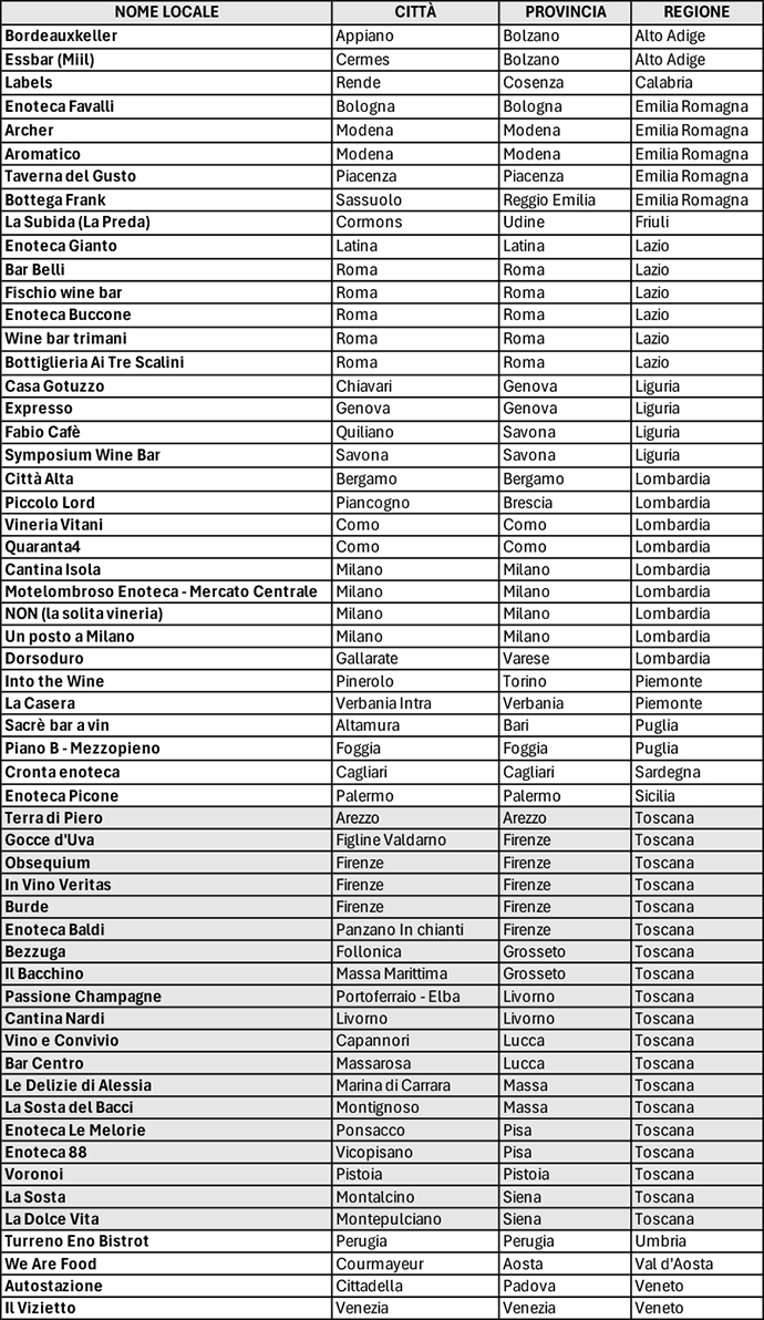 La rete dei locali coinvolti riflette lo spirito dell’iniziativa: luoghi diversi, dall’atmosfera intima delle enoteche di quartiere ai bistrot contemporanei, uniti da un filo comune — la voglia di raccontare un territorio attraverso un calice. Per tre giorni, l’Italia del vino si ritrova intorno a un’unica bottiglia, in un brindisi diffuso che celebra l’incontro tra gusto, cultura e condivisione. Qui la scheda tecnica del vino.
