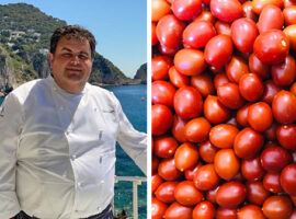 Tra le proposte più sorprendenti, la pinsa con olio, sale e rosmarino, accompagnata da salumi di mare, frutto di diverse tecniche di frollatura e stagionatura del pesce. Tonno, polpo e totano vengono trattati con la stessa cura delle carni: dal prosciutto e salame di tonno alla ‘nduja di polpo, fino alla mortadella di spada e tonno, cotta lentamente a bassa temperatura. Il più curioso è il totano lavorato come lardo, profumato con scorza di limone, rosmarino e sale: un boccone che evoca il mare e la montagna insieme, il Mediterraneo e l’Appennino. In abbinamento, un cocktail firmato Caruso: pomodoro fresco infuso con capperi e vodka al cappero, in un equilibrio tra dolcezza, sapidità e freschezza che diventa un vero omaggio ai sapori del Sud.