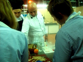 Durante il secondo appuntamento 20 partecipanti al laboratorio “Quinto quarto, la cucina senza sprechi” hanno seguito le indicazioni di Niko e preparato due ricette con ingredienti di recupero. “L’intervento del cuoco – sottolinea Niko – serve a valorizzare materie prime tipiche della tradizione contadina, come gli ortaggi e i tagli di carne più poveri. Con costi bassissimi e qualche variante si possono ottenere piatti molto interessanti”. Piatto popolare per eccellenza, la trippa di agnello con pomodoro diventa una ricetta gourmet grazie alla vivace aggiunta di scorza di arancia grattugiata e di pecorino molto stagionato. Per il secondo piatto, un semplice pancotto a base di pane raffermo, il tocco dello chef è un uovo crudo per un ben riuscito contrasto caldo/freddo e succo di limone che rinforza l’acidità del pomodoro e smorza la grassezza del tuorlo.