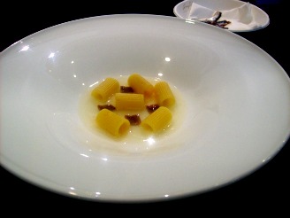 Il primo lo ha visto protagonista insieme alla pasta Garofalo di una lezione di cucina. “Ciò che può fare la differenza – spiega Niko – in un piatto di pasta è la diversa tecnica di cottura, in base alla quale si possono estrarre tutti gli amidi per ottenere una mantecatura cremosa se cuociamo la pasta direttamente nel liquido con cui la condiremo o completa se gli amidi vengono scaricati nell’acqua di cottura”. Niko ha presentato due ricette diverse per ispirazione e carattere: capellini con cime di rapa, cotti nell’acqua estratta dalla centrifuga della verdura, avvolgenti e morbidi e mezze maniche con acciughe, peperoncino e cime di rapa in gel con sfumature amare/sapide in perfetto equilibrio. “Una variante di cottura per la pasta – ci rivela Niko – con cui ho costruito una ricetta per il mio menu è quella della pasta all’uovo fritta e cotta in padella, con un assorbimento perfetto del sugo ed una consistenza straordinaria”.
