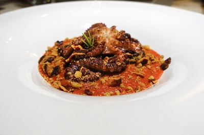 Buono il polpo scottato al rosmarino con pancetta, briciole di pane, e vellutata di peperoni, un piatto con una nota piccante ed affumicata e insoliti sentori di terra dati dall’unione con rosmarino e peperoni.