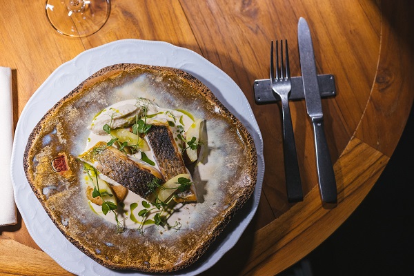 Ultima portata dei salati è un branzino con pil-pil di acciughe. Qui, oltre alla connotazione territoriale, evidenziamo la materia prima, dove emerge il lavoro di Luca Monica. Profumo e gusto del pescato incredibile, enfatizzati ancor di più dalla tecnica di cottura e dai condimenti, che lo valorizzano. Le materie prime infatti, non sono volutamente solo colombiane, ma quando è impossibile importare si pesca internamente, selezionando le migliori prelibatezze nazionali, abbinandole comunque ai gusti colombiani sopracitati.