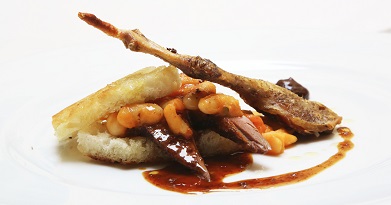 (Panino di piccione arrosto con fagioli freschi e marmellata di prugne)