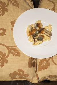 Fusillone con Fiore Sicano sgombro affumicato, pomodoro e mela (Caruso)