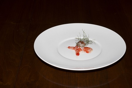 (Gambero rosso di Salina, limone, caviale di lumache e finocchietto selvatico – Caruso)