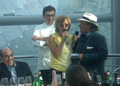Poi ci ha pensato il giapponese Isao Miyajima, che dal 1983 ha vissuto gli anni del rinascimento enologico italiano, a riscaldare gli animi della platea con il suo modo brillante di raccontare i viaggi che ha fatto nelle aziende toscane, all’epoca non molto ospitali. Ma il meglio si è avuto durante la colazione da Peck, il ristorante allestito dentro Palazzo Italia, dove il finger food  preparato dallo chef Matteo Vigotti che non ha sbagliato nessun piatto, è stato accompagnato dal Barolo Mirafiore di Oscar Farinetti, spumante da Negroamaro amaro Noi3 di  Futura 14 di Bruno Vespa, Cabernet franc Narnot di Le Madeleine di Massimo D’Alema, Barbera La Maga del Castello di Cigognola di Gian Marco Moratti, dal blend di Negroamaro e Primitivo Platone delle Tenute di Albano Carrisi, dal Sangiovese Innno (tre enne, non è un errore) della Certosa di Belli Guardò di Gianna Nannini, Grechetto di Todi bianco del Cavaliere della Cantina di Luisa Todini: professionalità diverse prestate al mondo del vino che stuzzicate dal direttore del Tg2 Marcello Masi, non si sono risparmiate a raccontare perché hanno deciso di coltivare la vigna, trasformare l’uva  e imbottigliare.
