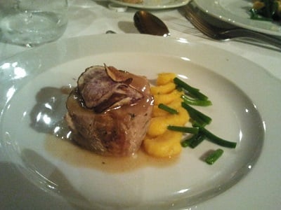 (Filetto di suino nero di Parma intramezzato di culatello di Zibello e tosone di Massimo Spigaroli)