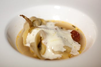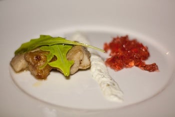 A partire dai finger food che hanno aperto le danze, serviti sulla terrazza del Signum: carpaccio di vitellina con albicocca e zenzero; crumble al guanciale affumicato e guancetta salmistrata; arancinetta con quaglia e salsa di cipolle; battuta di manzo con mela e zafferano; rochere di agnello; panino con interiora di bovino, suino e pollo con salsa bernese e cetriolo.
