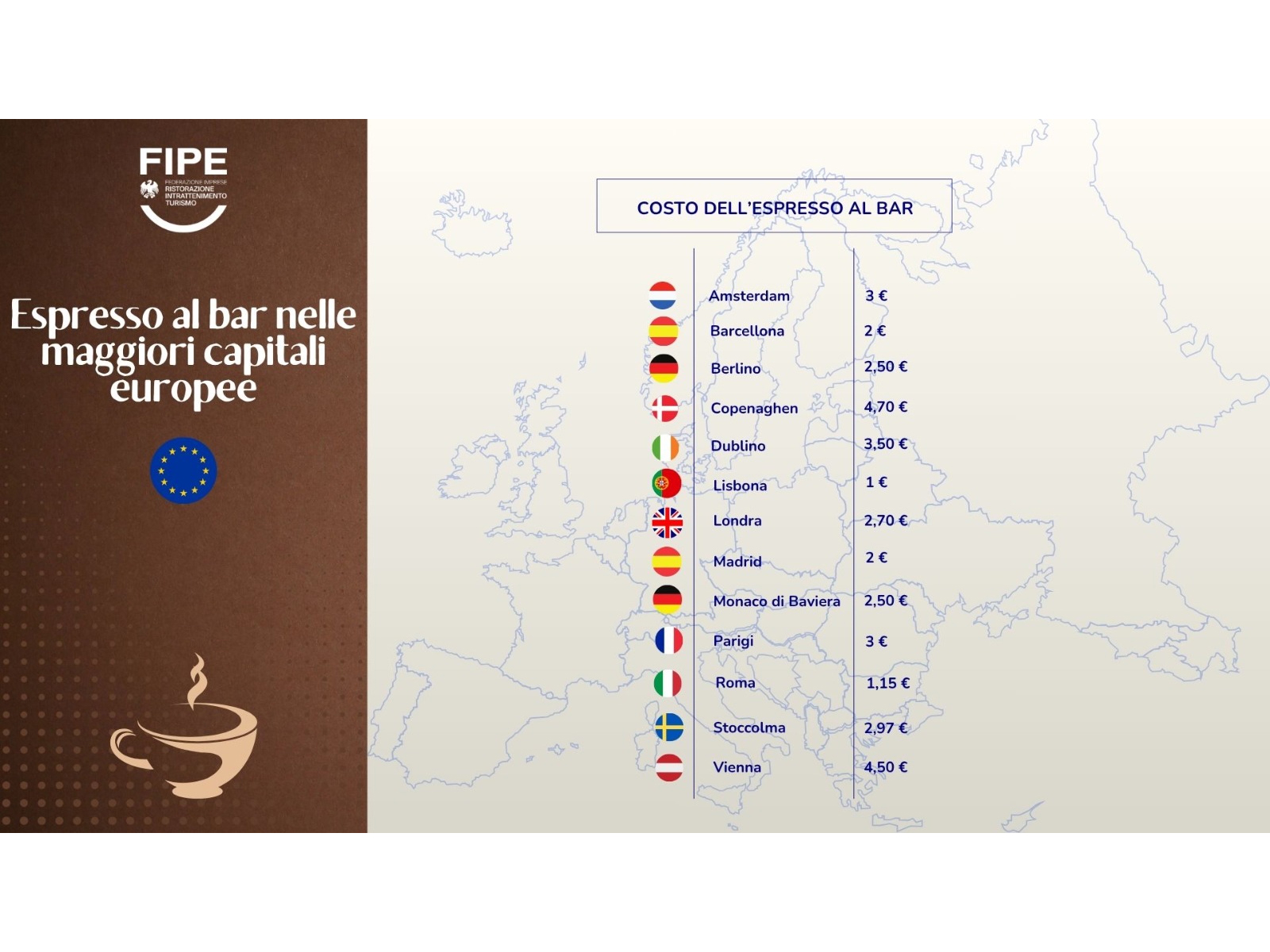 Con un prezzo medio di 1,20 euro, l’espresso italiano è il più basso d’Europa