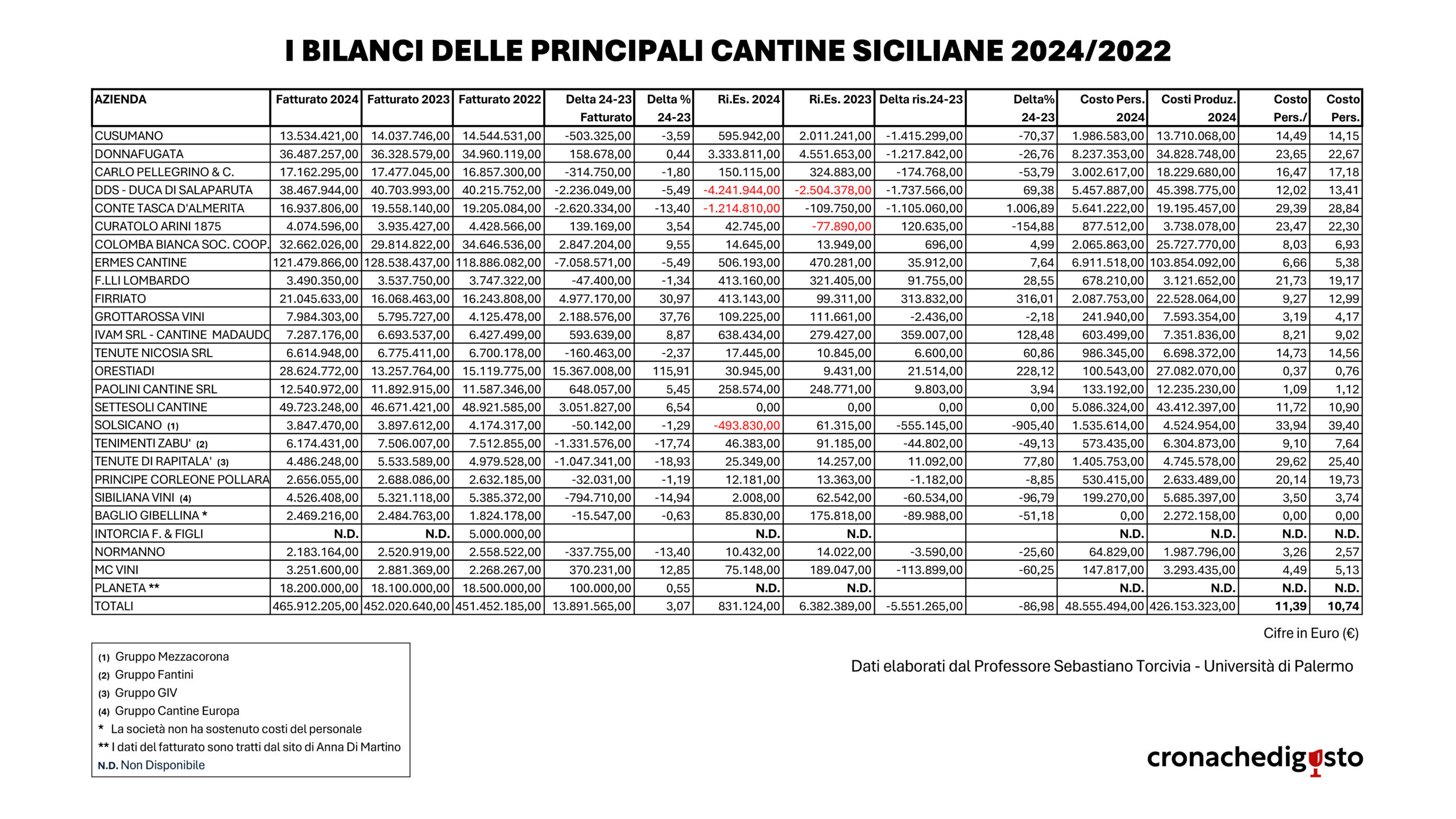 Bilanci delle cantine siciliane, nel 2024 giù utili e fatturati. Ecco chi e quanto guadagna e chi e quanto perde
