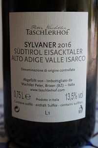 Piacevolissimo l’Alto Adige Valle Isarco Doc Sylvaner 2016, probabilmente la bottiglia che meglio rappresenta l’azienda. Viene maturato in grandi botti di acacia per il 30 % e per il restante 70 % è affinato in acciaio. E’ un vino che si distingue per purezza ed eleganza, essendo polposo, fruttato e, nello stesso tempo, dinamico e ricco di energia. Il colore è giallo verdolino leggermente scarico. Al naso è fine con nitidi profumi di mela, toni leggermente esotici, cenni agrumati e note vegetali che ricordano fieno ed erbe di campo. Il sorso si distingue subito per la vibrante freschezza che è una delle sue caratteristiche principali, accentuata in questo caso dalla giovinezza.