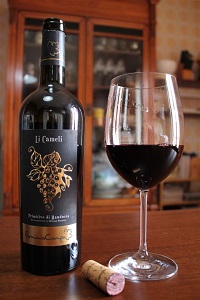 Le bottiglie prodotte annualmente sono circa 40 mila, molto al di sotto della potenzialità della superficie vitata poiché vengono mantenute rese molto basse a vantaggio della qualità. La gamma di etichette è composta da due Primitivo di Manduria Dop, Li Cameli e Li Janni, fatti con uve provenienti dalle omonime contrade e da un bianco a base di Sauvignon, il Terrise. Abbiamo degustato il Primitivo di Manduria Dop Li Cameli 2015, un rosso potente e ben riuscito. Le uve, provenienti da piante di oltre 40 anni di età, vengono raccolte manualmente durante la seconda settimana di settembre.