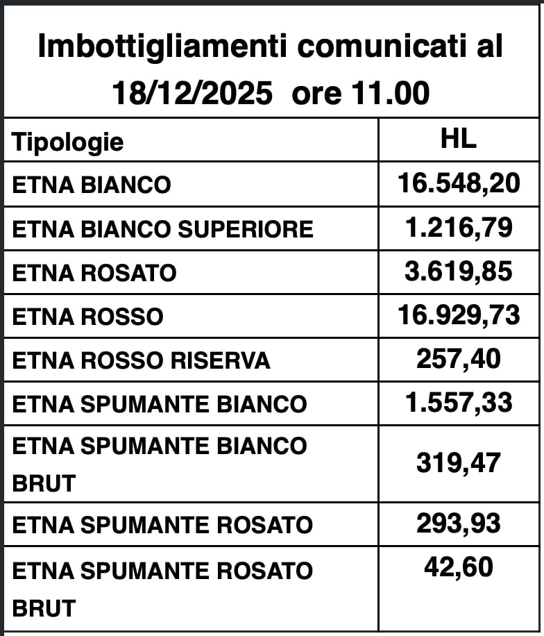 Lo certifica l’Irvo, l’Istituto regionale del Vino e dell’Olio, che è anche l’ente certificatore della Doc Etna. Come è facilmente intuibile dalla lettura del grafico pubblicato, la somma dell’Etna Bianco e dell’Etna Bianco Superiore arriva a quasi 18 mila ettolitri di vino. L’Etna Rosso sfiora invece i 17 mila ettolitri.